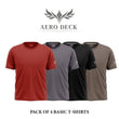 Pack of 4 Aero Deck Cotton Jersey Black, Grey, Red & Brown Color T-Shirt