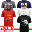 Pack of 5 Aero Deck Cotton Jersey Black, Grey, Red, Blue & White Color Graphic T-Shirt - (Code: AD - 130)