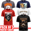 Pack of 5 Aero Deck Cotton Jersey Black, Grey, Red, Blue & White Color Graphic T-Shirt - (Code: AD - 158)