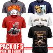 Pack of 5 Aero Deck Cotton Jersey Black, Grey, Red, Blue & White Color Graphic T-Shirt - (Code: AD - 160)