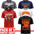 Pack of 5 Aero Deck Cotton Jersey Black, Grey, Red, Blue & White Color Graphic T-Shirt - (Code: AD - 178)