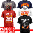 Pack of 5 Aero Deck Cotton Jersey Black, Grey, Red, Blue & White Color Graphic T-Shirt - (Code: AD - 182)