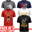 Pack of 5 Aero Deck Cotton Jersey Black, Grey, Red, Blue & White Color Graphic T-Shirt - (Code: AD - 120)