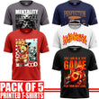 Pack of 5 Aero Deck Cotton Jersey Black, Grey, Red, Blue & White Color Graphic T-Shirt - (Code: AD - 179)