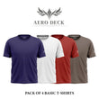 Pack of 4 Aero Deck Cotton Jersey White, Brown, Blue & Red Color T-Shirt