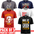 Pack of 5 Aero Deck Cotton Jersey Black, Grey, Red, Blue & White Color Graphic T-Shirt - (Code: AD - 114)