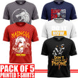 Pack of 5 Aero Deck Cotton Jersey Black, Grey, Red, Blue & White Color Graphic T-Shirt - (Code: AD - 121)