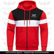 AERO DECK Men's Red, Black & White Panel Fleece Full-Zip Hoodie AERODECK APPARELS