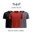 Pack of 3 Aero Deck Cotton Jersey Black, Red & Grey Color T-Shirt