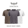 Pack of 3 Aero Deck Cotton Jersey Brown, White & Grey Color T-Shirt