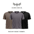 Pack of 3 Aero Deck Cotton Jersey Brown, Black & Grey Color T-Shirt