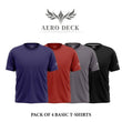 Pack of 4 Aero Deck Cotton Jersey Black, Grey, Red & Blue Color T-Shirt