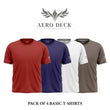 Pack of 4 Aero Deck Cotton Jersey Blue, White, Brown & Red Color T-Shirt