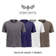 Pack of 4 Aero Deck Cotton Jersey Brown, Blue, Grey & White Color T-Shirt