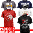 Pack of 5 Aero Deck Cotton Jersey Black, Grey, Red, Blue & White Color Graphic T-Shirt - (Code: AD - 102)