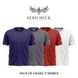 Pack of 4 Aero Deck Cotton Jersey White, Grey, Blue & Red Color T-Shirt