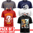 Pack of 5 Aero Deck Cotton Jersey Black, Grey, Red, Blue & White Color Graphic T-Shirt - (Code: AD - 143)
