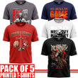 Pack of 5 Aero Deck Cotton Jersey Black, Grey, Red, Blue & White Color Graphic T-Shirt - (Code: AD - 194)